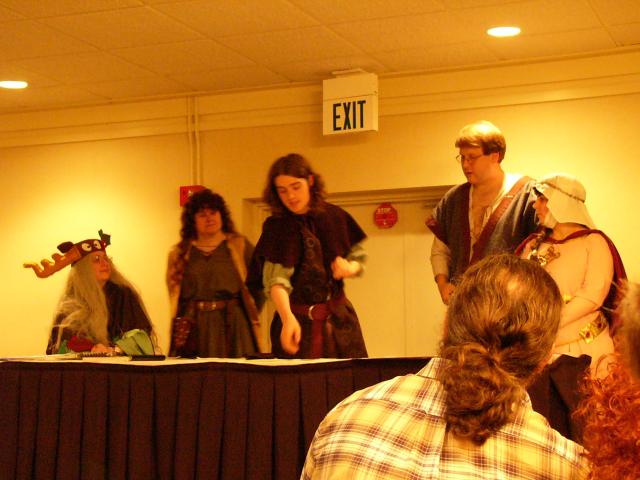 Major Oak Awards Ceremony: Herne (Helen Avry), Marion (Kitty Gamarra), Huntingdon (Charlie McKinnon), Locksley (Rolf Granlund), and Queen Isabella (Julianne Toomey-Kautz) |